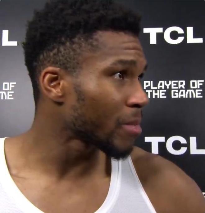 赛后,希腊球星扬尼斯-阿德托昆博在接受采访时眼里包含热泪。
