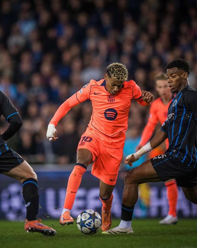 下半场,第61分钟,费尔明脚后跟巧妙分球,亚马尔拿球后连续变向晃开空间,冷静推射破门,2-2!然而巴萨的快乐只维持了120秒,第63分钟,瓦纳肯送出直塞,福布斯单刀挑射入网,再度上演传射秀,布鲁日3-2领先!第77分钟,亚马尔又一次扛起球队,他右路晃动后传中,措利斯解围失误自摆乌龙,3-3!巴萨三度落后,三次扳平比分,亚马尔此役的表现是顶级的。