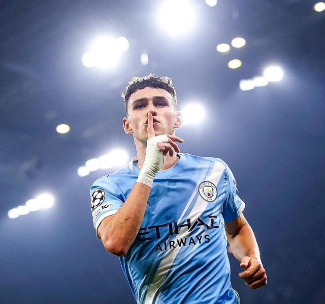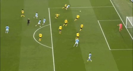 比赛第22分钟,赖因德斯送出直塞,太子福登停球、转身、拔脚,一气呵成,皮球直奔死角,曼城1-0领先。